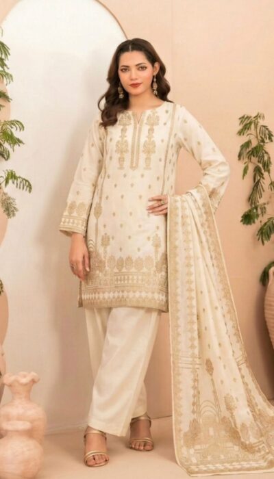 Tawakkal Lania Festive | Classic Off-White & Gold Broshia Banarsi Lawn 3PC
