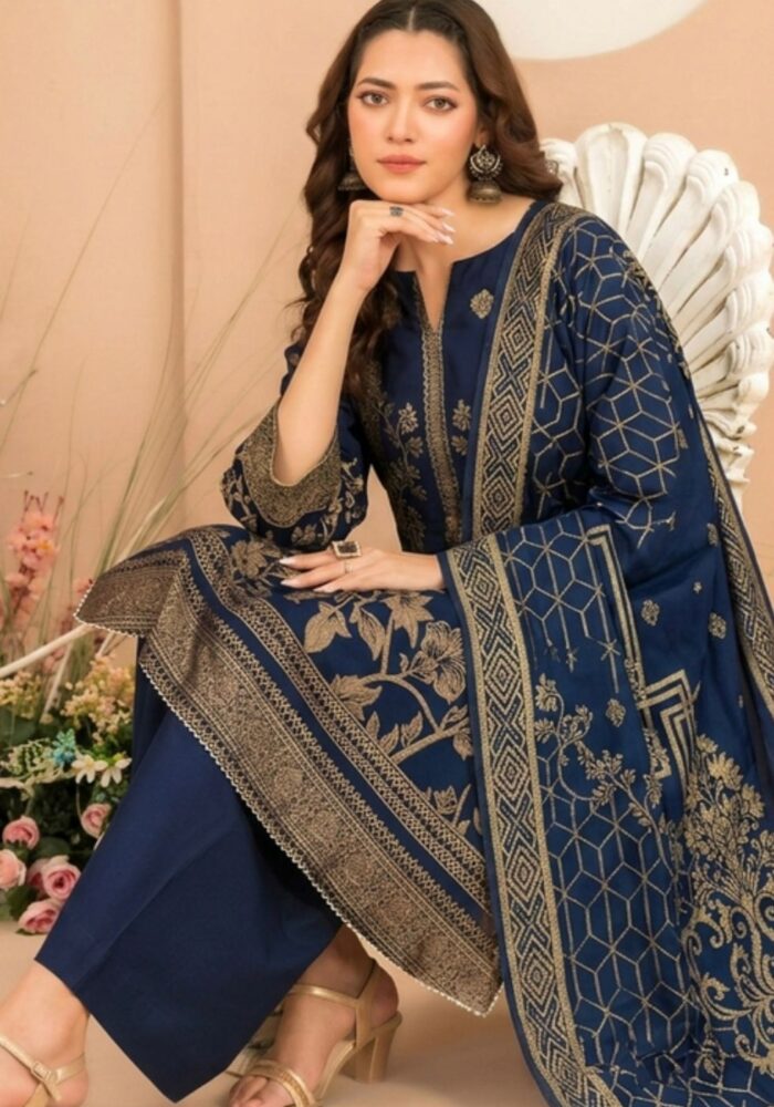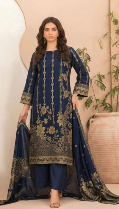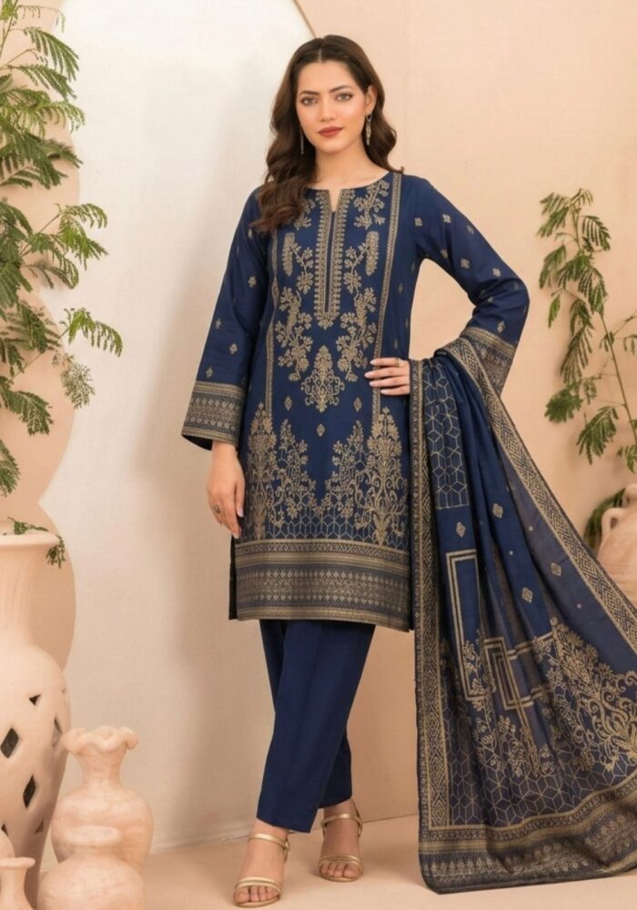 Tawakkal Lania Festive | Floral Navy Blue & Gold Broshia Banarsi Lawn 3PC