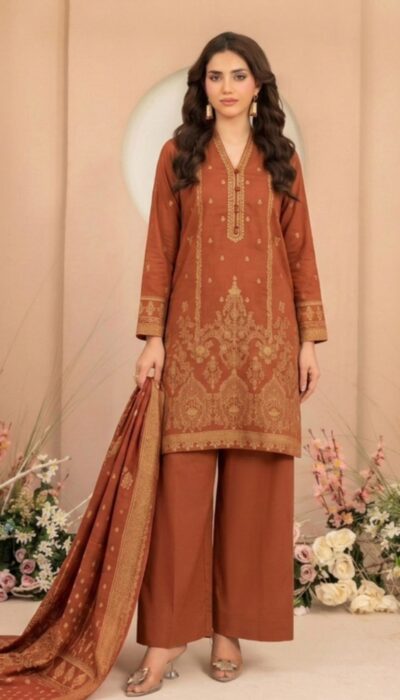 Tawakkal Lania Festive | Antique Rust & Gold Broshia Banarsi Lawn 3PC